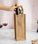 Natural jute. Cotton webbing carry handles. Holds up to a 1.5 litre bottle. Capacity 4 litres.