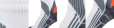 35% Coolmax® polyester/35% cotton/28% polyamide/2% elastane. Moisture management fabric. Breathable. Quick dry. Good ankle support.