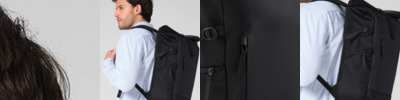 Rear padded laptop compartment, compatible up to 16". Zipped front compartments with an internal organiser. Clamshell zipped main compartment. Top zipped valuables pocket. Exterior zipped front pocket for easy decoration. Internal key clip. Internal mesh zipped pocket. Two-way zipped opening for easy access. Padded, adjustable air mesh shoulder straps. Rear luggage strap. Padded grab handles. Dual compression straps. Adjustable chest strap. TearAway label for ease of rebranding. Contains 100% GRS-certified recycled polyester, certified by Control Union CU811033.