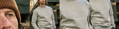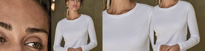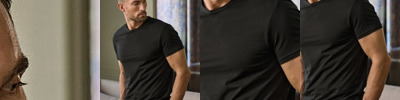 Two-layer collar with elastane. Double pre-shrunk. Double stitched. Long-fibre cotton. Enzyme-washed. Silicone treatment. Full-feeder elastane. Shoulder-to-shoulder taping.
