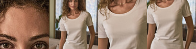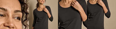 Double-stitched. Double pre-shrunk. Long-fibre cotton. Enzyme washed. Silicone treatment. Washable at 60˚C. Shaped fit. Elastane neck rib. Certified organic cotton.