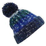 Tearaway label for ease of rebranding, Heavyweight multi yarn cable knit design, Non-removable pom pom for added safety, Bold four colour stripe design, Luxurious shearling thermal band for extra warmth, Cuffed design for optimal decoration, Available in Infant and Junior sizes