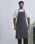 Butchers style striped apron, 90cm self fabric ties, Self fabric neck band, Extra long length apron, Width: 72cm, Total length: 101cm, * Black/Grey: 65% polyester, 35% cotton twill, 195gsm, Worldwide Responsible Accredited Production (WRAP) certified production
