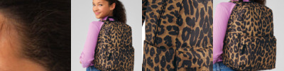 Leopard print design. Zipped front pocket. Side pockets. Padded back panel. Padded, adjustable shoulder straps. Grab handle. Tear-away label for ease of rebranding. Contains 100% GRS-certified recycled polyester, certified by Control Union CU811033.