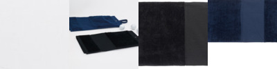Deluxe golf towel in 100% cotton luxury velour. Trifold design. Printable border section at lower edge. Woven strap with YKK snap-and-popper fastening. Highly absorbent. Luxury feel. Tear-out label for rebranding ease.
