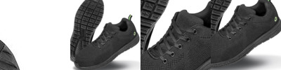 Energy absorption heel with microfibre heel scuff. Metal-free composite toecap and plastic eyelets. Ventilating mesh and lining wicks away moisture. Durable, lightweight, low-cut sports look. Dual-density PU midsole. Padded tongue and collar. SR slip resistance. Anti-static. Heel loop. Recycled polyester upper.