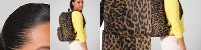 Leopard print design. Zipped front pocket. Side pockets. Internal laptop slip. Padded back panel. Padded, adjustable shoulder strap. Grab handle. Tear-away label for ease of rebranding. Contains 100% GRS-certified recycled polyester, certified by Control Union CU811033.