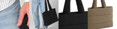 Soft, quilted fabric. Soft-touch lining. Main compartment with hidden magnetic closure. Two internal slip pockets. Lining with hidden zip access for decoration. Self-fabric carry handles. Tear-away label for ease of rebranding. Contains 100% GRS-certified recycled polyester, certified by Control Union CU811033.