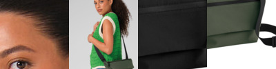 Crinkled nylon fabric. Minimalist styling. Zipped main compartment. Zipped front pocket. Internal slip pocket. Cord pulls. Main compartment with magnetic closure. Adjustable shoulder strap. Tear-away label for ease of rebranding. Contains 100% GRS-certified recycled nylon, certified by Control Union CU811033.