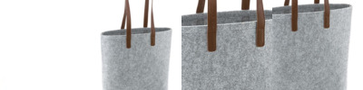 100% polyester felt. Full grain leather-look PU straps.Carry/shoulder straps (70cm long).Tear out label.Capacity 13 litres.
